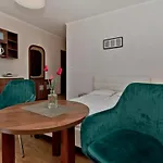 Do dyspozycji Gości w obiekcie są kuchenka mikrofalowa, czajnik elektryczny i lodówka. Jedynie w ciągu 5 min spacerem znajduje się restauracja Restauracja Tawerna Złota, serwująca dania kuchni europejskiej. Obiekt znajduje się 70 km od lotniska Gdańsk im. Lecha Wałęsy.
